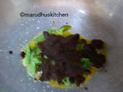 The bhaji should be in consistency that we must be able to smear it on thattai.