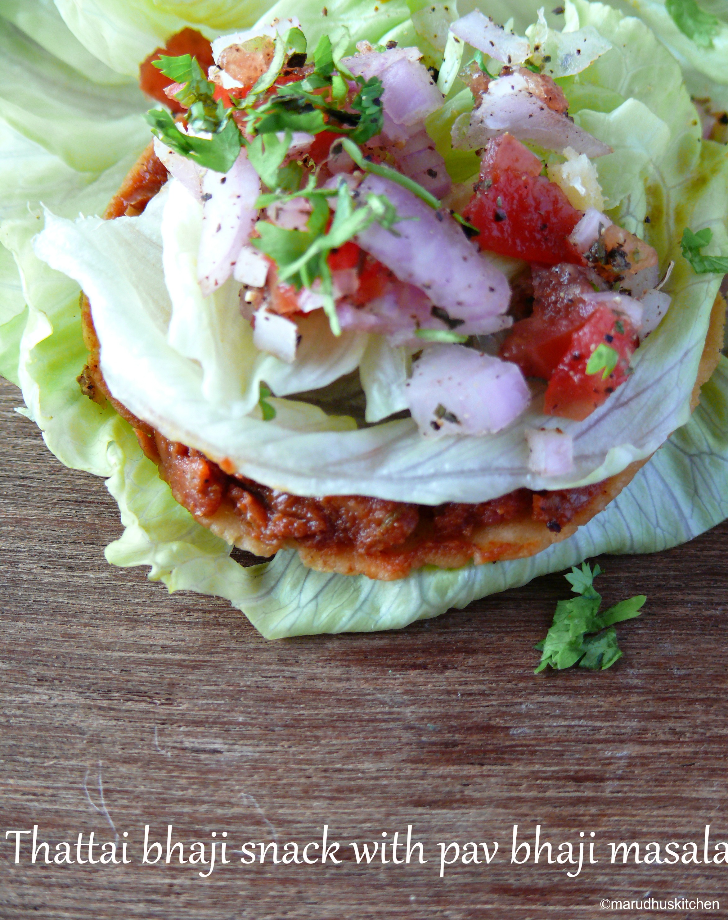 I was puzzling whether the combination of thattai/nippatu and pav-bhaji masala will work!I have done this snack/chat using thattai/nippatu as the base! and astonishingly came out well as a delectable and winsome snack.