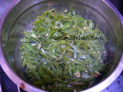 - Keep a kadai add oil when it is hot add mustard seeds and chillies when seeds splutter add avarakkai to it and mix nicely.