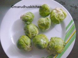 Brussels sprouts looks exactly like cabbage but in miniature form,it was not so much in use here in India till few years back.I read that the name “brussels”come from the place where it was cultivated according to “wikipedia” .It was mostly available in the hill stations here.But,now these brussel sprouts are available at all major cities here.Still,most of them don’t know the actuality of this wonderful little leafy vegetable.