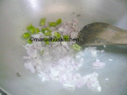 3.Then add onion,chillies and fry for a minute.