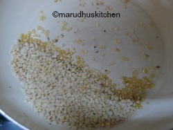 1.Add oil to a kadai heat up and add urad dhal to brown.