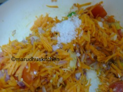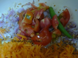 3.Add tomatoes and carrots to cook nicely by adding salt and green chillies to it.