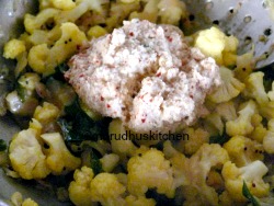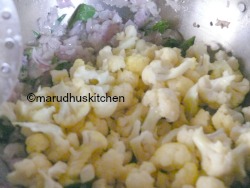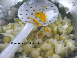 7.Add the florets with needed salt and turmeric powder.
