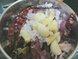 I admire for her well worse cooking skills.Very apt side dish to go with idli,dosa and paniyarams. Even I love having it with Gothumai dosai and adai. If you want to avoid spiciness you can use kashmiri chillies alone.Using kashmiri chillies gives a vibrant red colour without a fiery taste.Add tamarind in correct amounts otherwise it will become too tangy.The very specialty about this chilli and garlic chutney is that it can be made without adding coconut.