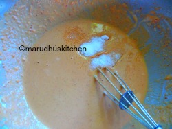 - Add water and mix till the batter coats the spoon..
