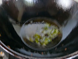 9.Fry some curry leaves in oil and add to gobi.