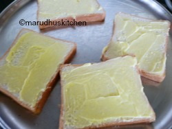 - Butter the upper side of the slice(grill is already buttered).