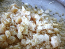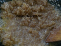 - Add little ghee in a kadai and add coconut and fry for some time.