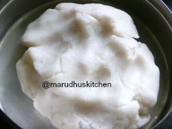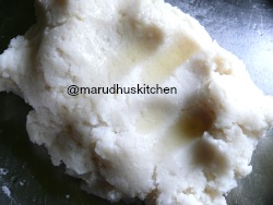 6.Transfer it to a plate and When it is warm add oil and knead well to a smooth dough and keep covered.