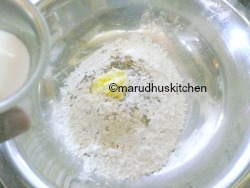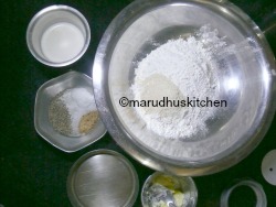 - Take a large vessel add rice flour ,urad dal flour, hing,jeera,needed salt and butter.