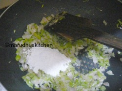 5.Add maida and stir well for a minute add milk,stir in nicely without any lumps.