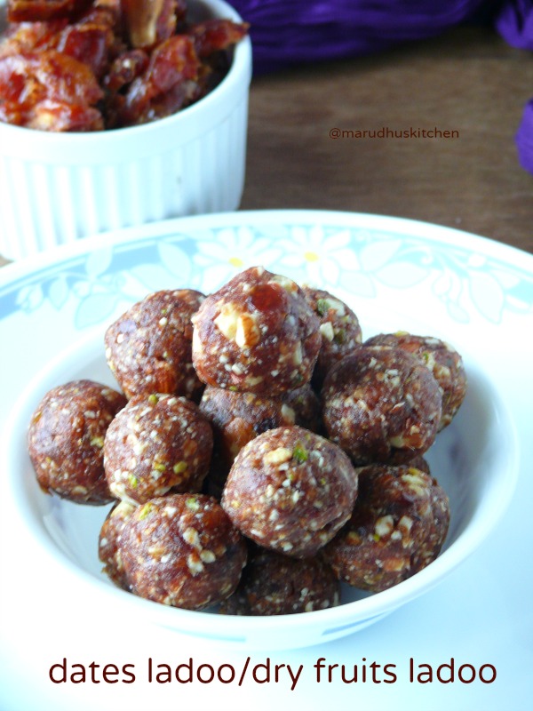without any sugar added.It is more self satisfying that it is a sugar-less sweet!it is not only good for pregnant women it is good for every one especially for kids.This time I got imported special kind of sticky dates from a friend abroad!!and prepared this dates ladoo!!of-course can be done with whichever dates that you get or use at home.These dates ladoo is yet another easy sweet for diwali that can be done quickly,but an ever healthy sweet.