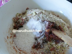 3.Then add nuts and coconut(dry) and stir to form a mass (for few minutes).