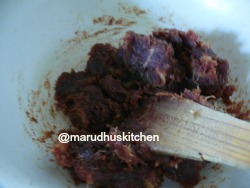 2.De-seed the dated grind coarsely and add it in a kadai with little ghee and stir nicely to a mashed stage.