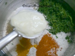 - Mix and add curd to it mix everything to form a dough.