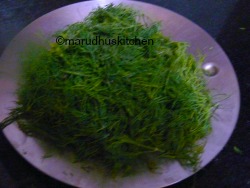 Soy keerai/dill leaves – 1 hand full(wash, pluck the leaves part alone)