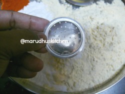 4.Select a suitable hole disc for omapodi squeezing and fill the dough in the squeezer.