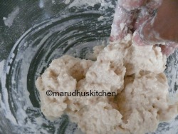 12.Finally smooth dough will form though sticky(moisture will be absorbed to a certain extend).