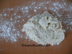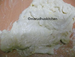 - Dust some maida to work area and keep on stretching the dough for minimum 10 minutes.