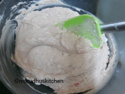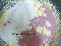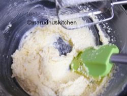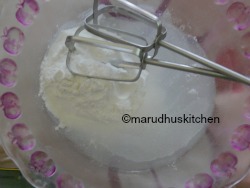 7.Now add flour little at a time by only folding not by beating.