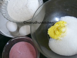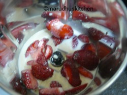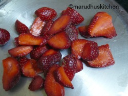 Fresh strawberries – 1/2 cup(chopped),vanilla essence – 1 tsp for cake.
