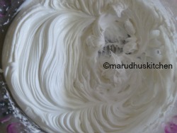2.Now cream the whipped cream with 6 tbsp of water ,1 tbsp sugar and vanilla essence till fluffy and airy.