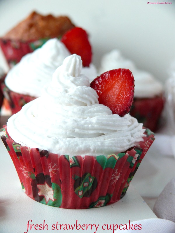 But this time when I did this strawberry cupcakes with eggs I clicked the step wise pictures just like that and it was for my hubby’s birthday.When it turned out with a pretty look and taste I was tempted to take final pictures.Long time was thinking to try strawberry cupcakes as I have already tried halwa with these strawberries!both are and will be kids favorite for sure.While adding flour only fold it don’t beat it with a beater and even while mixing butter and sugar cream it at high-speed for five minutes so that the color of the butter changes from yellow to white.I have tried this recipe from Martha stewards blog and they have used four eggs for given flour measurement but I have used only two which also have tuned out pretty good and nice.Not to mention I have made minor changes from the yummilicious original recipe.