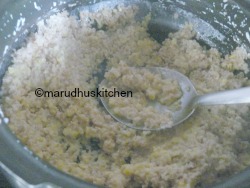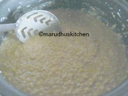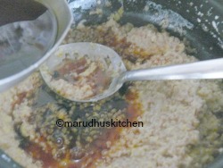 - Open cooker and mash the wheat mixture then add filtered jaggery liquid and let it cook for some minutes.