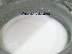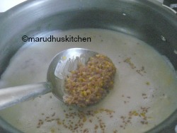 4.Keep a pressure cooker add milk and let it boil then add wheat-dal mix and let it boil.