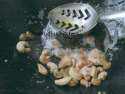 7.Take a pan with ghee and roast cashews to brown then add raisins till it puffs up,switch off.