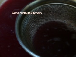 6.Then filter the content(sugar syrup) and add to the grape juice,mix well and once-more filter it.