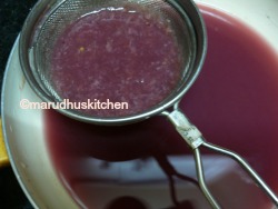 - Then filter the content(sugar syrup) and add to the grape juice,mix well.