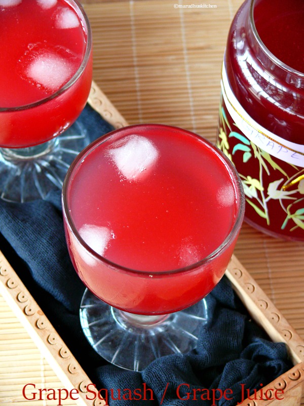 There are huge diversified variations of cool drinks that can be made!fruit squashes are one such concentrates that can be prepared well in advance,refrigerated and enjoyed all through summer.Really loved the colour of the black grapes squash! it is so intense and attractive drink to have this summer.Black grapes with seeds have a special taste sweeter than the seedless grapes and black grape squashes are super delicious.This squash can be preserved for longer days by adding sodium benzoate but I have not added because I had no idea of storing it for longer days(just to refrigerate for ten days or so ).