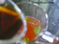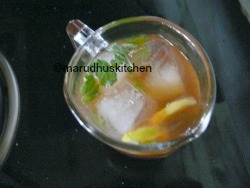 I always have a practice to enjoy this pot water althrough these summer months!its totally refreshing.The same thing with homemade iced tea recipe lemon (with)/and mint its so refreshing that I added(earthen) pot water with it and enjoyed.But in order to show you the exact way it is made I have clicked it with some ice cubes but instead of ice-cubes you can chill this tea for some time in fridge and have a total revitalized feel.Adding mint leaves and lemon juice is the total highlight of this drink.Even tea bags/green tea can be used to make this iced tea.
