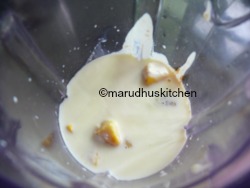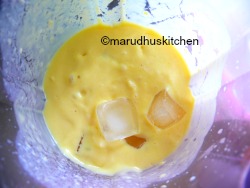 - Put every thing in a mixer jar beat well and now add ice cubes and again beat till frothy.