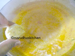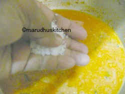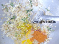 10.Then add coriander,chilli and turmeric powder saute till rawness goes .