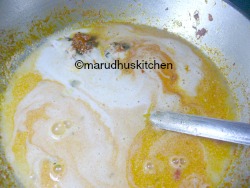 13.Add the coconut paste with water and mix.