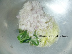 - After that add curry leaves, then add onions to light brown.