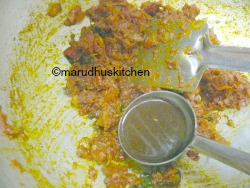 12.Now add tamarind extract and cook till oil oozes.