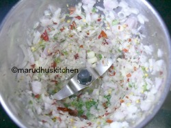 3.First grind dry redchillies,garlic,onion,sombu powder,some curry leaves coarsely then add dals with needed salt and grind it like grainy texture(not smooth).