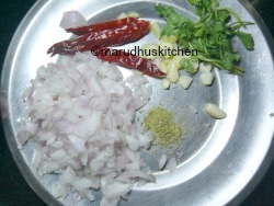 Garlic cloves – 4-5(cut),some curry leaves,salt to taste