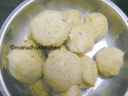 - Then make balls and steam it in a steamer for 3 minutes and keep it ready.