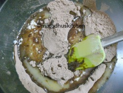 - Mix them well,it will not form dough but when pressed it will hold shape.