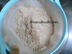 - Add both maida and cocoa powder and sieve it.