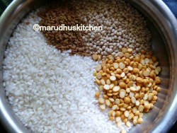 - Soak rice,methiseeds,bengalgram dhal,urad dhal altogether for 4 hours.
