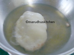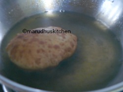 Fry it in hot oil adjusting the flame then and there so that bhaturas are perfectly cooked.
