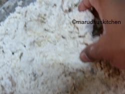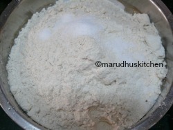 1.In a vessel take wheat flour and needed salt to it mix by adding water little by little till it forms a mass.