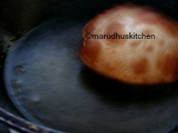The next popular combination in the North is poori with shrikhand!Coming to south mainly in Tamilnadu the most famed combination with poori is poori kilangu masala/potato masala.This potato masala is called as potato bhaji in the North.When kneading it should be kneaded to stiff dough which is neither too hard or soft(it should be pliable)kneading process is more important to get perfect pooris,if we knead soft then when added to hot oil the pooris will not be cooked and will be doughy.