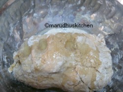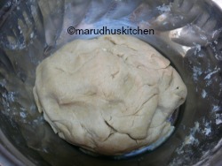 - Knead well and the dough should be a stiff not very soggy like we make for chappathi's,So should add water carefully while kneading.In-between add 2 tsp of oil and knead.